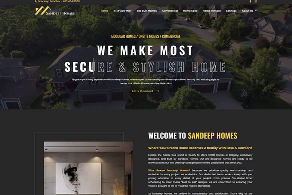 Sandeep Homes, based in Calgary, AB, specializes in Modular Homes, Onsite Homes, and Commercial Properties. We’ve expertly designed their logo and developed a dynamic, easy-to-navigate website, enhancing their professional image and online presence.