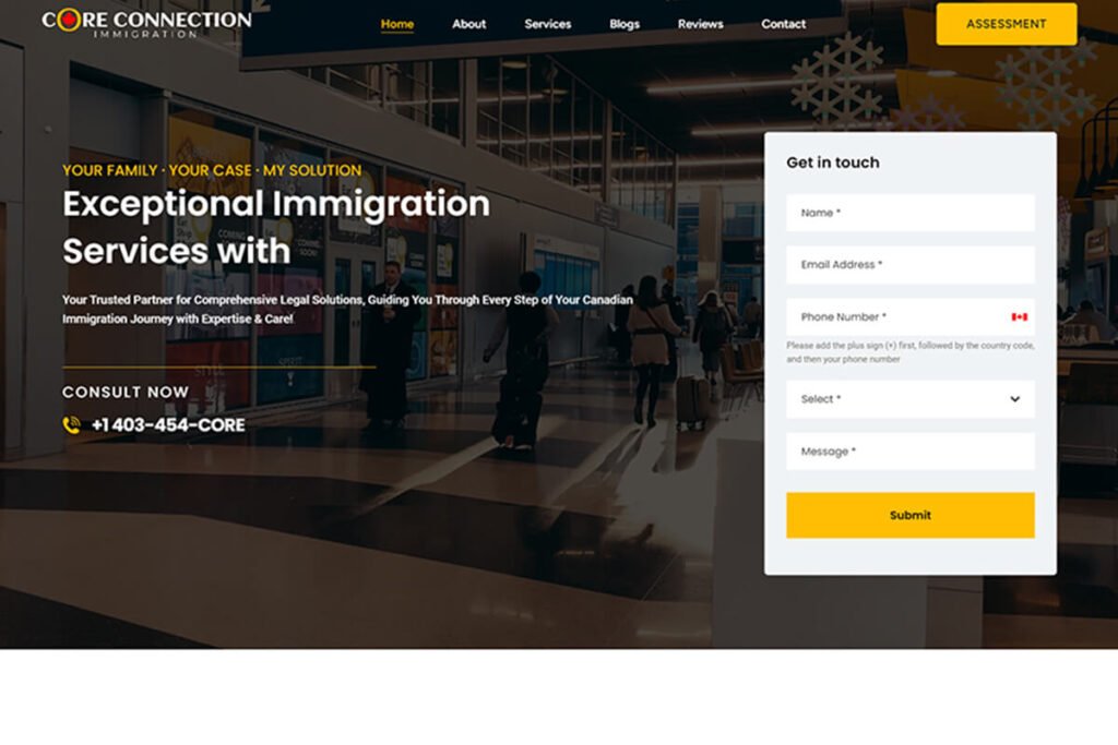 Core Connection Immigration Consultancy Limited, based in Calgary AB, provides expert Immigration Consultancy Services, guiding clients through the complexities of immigration with personalized and reliable support. We designed their Logo and Website, crafting a professional brand identity.