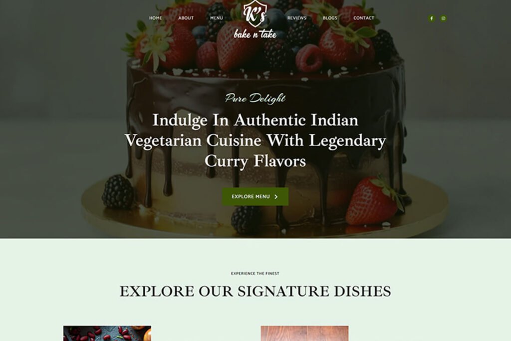 K’s Bake n Take, a pure Vegetarian Restaurant based in Calgary AB, specializes in delicious Vegetarian Cuisine and Custom Cakes, offering a unique blend of traditional and contemporary flavors. We designed their Logo and Website, creating a distinct and appealing brand identity.