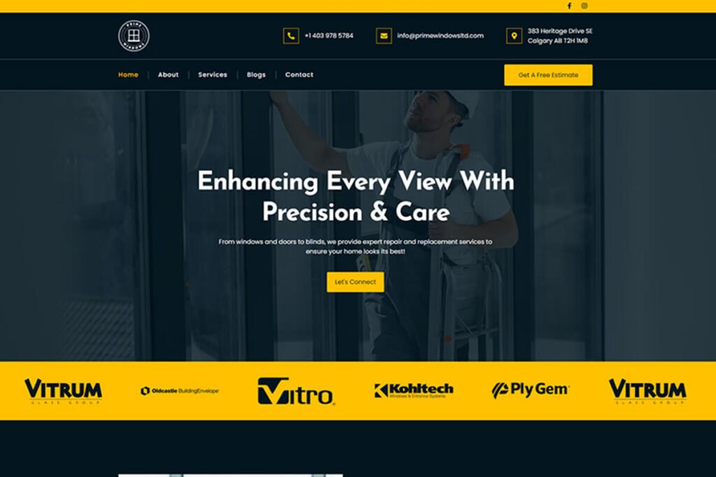 Prime Windows, based in Calgary AB, specializes in top-quality Window and Door Repair & Replacement, Glass Replacement, and Blinds Installation services. We designed their Logo and Website, creating a strong brand identity that resonates with their target audience.