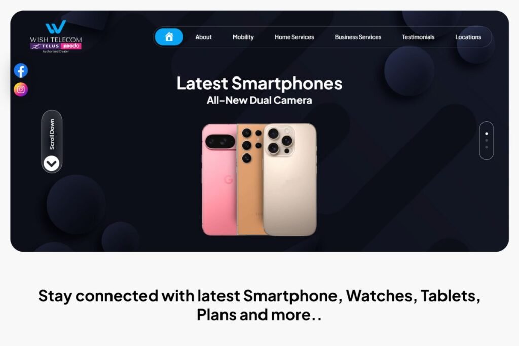 Wish Telecom in Calgary AB, is an authorized dealer of Telus & Koodo, offering top-tier telecommunications solutions. We refreshed their brand by redesigning their logo and website, creating a professional and modern identity that highlights their commitment to reliable connectivity and exceptional customer service.