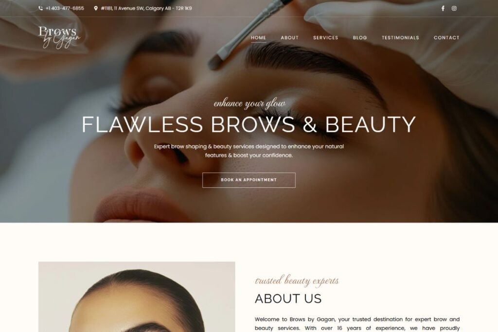 Brows by Gagan in Calgary AB, offers expert brow and beauty services, enhancing natural features with precision and artistry. We transformed their brand by redesigning their logo and website, creating a modern and elegant identity that reflects their expertise and dedication to beauty.