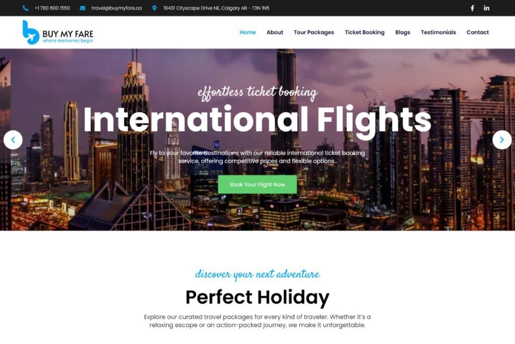 Buy My Fare in Calgary AB, specializes in affordable and convenient travel solutions, helping customers find the best deals on flights. We revamped their brand by redesigning their logo and website, creating a sleek and user-friendly identity that reflects their commitment to hassle-free travel booking.