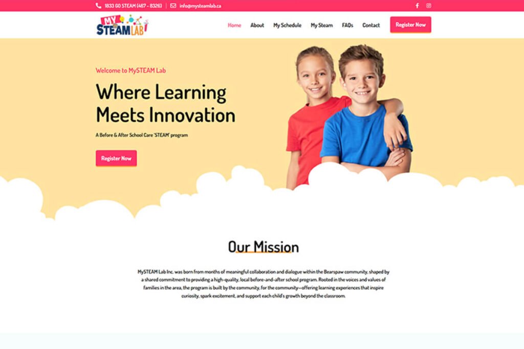 My Steam Lab, a licensed day-home agency in Calgary AB, is committed to nurturing young children through a safe, educational, and play-based environment. We designed a warm, family-friendly logo, built an informative website to support both parents & educators, and manage their social media to boost visibility.